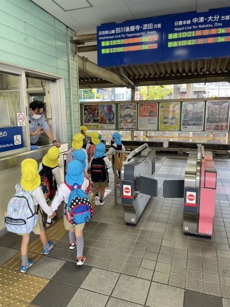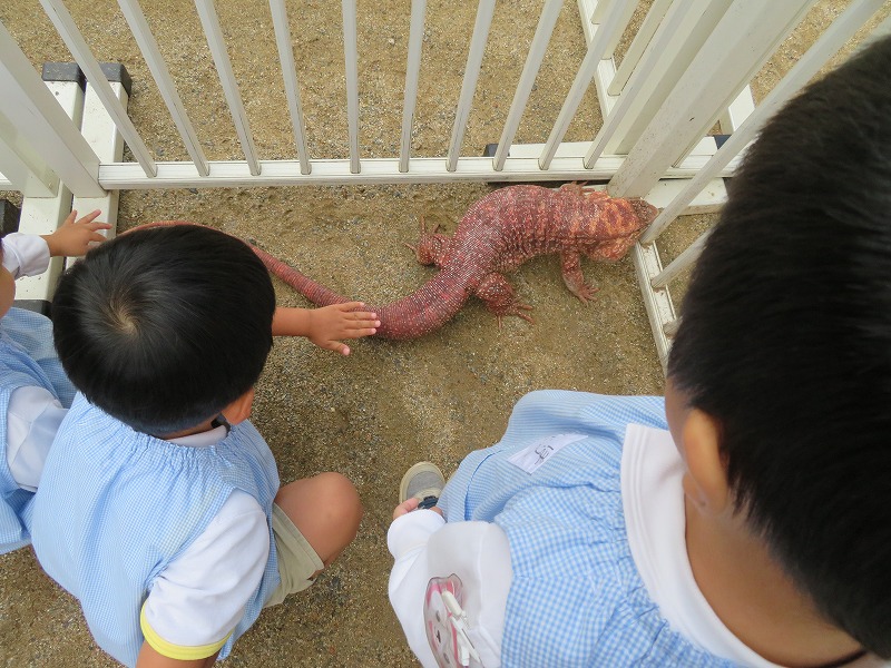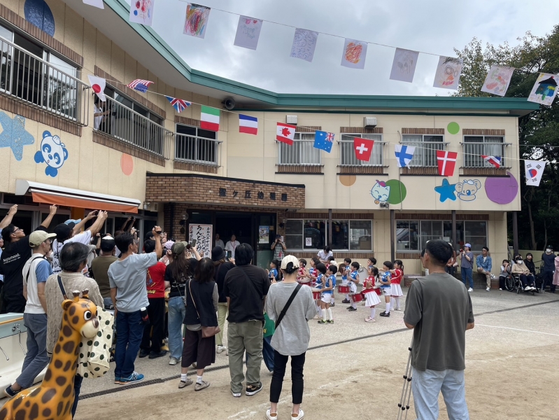 6月3日(火)、年長児まつ組さんの日帰り保育でもりのいえを訪れました。当日は、雨が降る中、保護者の方に見送ってもらい、大きなバスでもりのいえへ出発しました。不安そうな子もいましたが、着くとそんなこともなく無我夢中でみんなたくさん身体を動かしながら過ごしました。お昼には天気も回復し、ドンジャラホイさんと握手をし、お友達と仲良く過ごすことをしっかり約束しました。最後には、ドッキリンさんにマジックをみせてもらい、興奮する中、キャンドルサービスを行い、今日の一日を振り返りました。この一日を通して、まつ組どうしでたくさんの子と交流し、互いに遊ぶ中にしっかりした絆ができたように感じます。一日を過ごす中、成長したまつ組さんの姿を幼稚園でも見守っていきたいと思います。朝夕の送り迎えをいただきました保護者の皆様ご協力のほどありがとうございました。